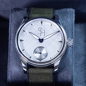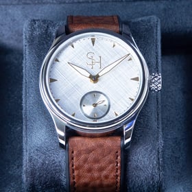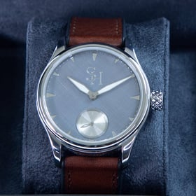 Since the end of 2024, we have been quietly developing our very own timepiece, built around the revered ETA 6498 movement. The result is a watch that reflects our shared approach to craftsmanship, detail, and restraint. It features a classic solid silver dial with a subtle, hand-finished linen texture, available in three finishes: patina silver and silver.