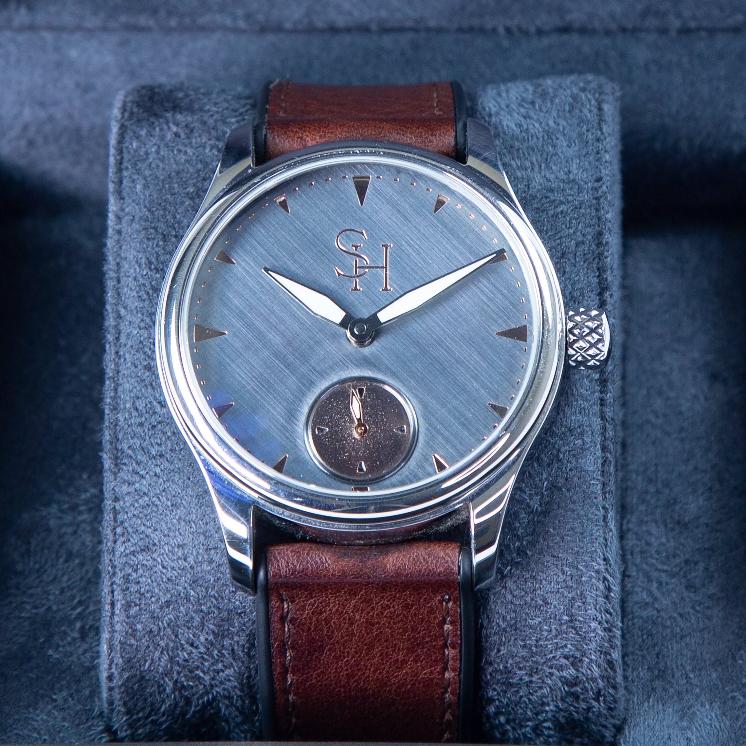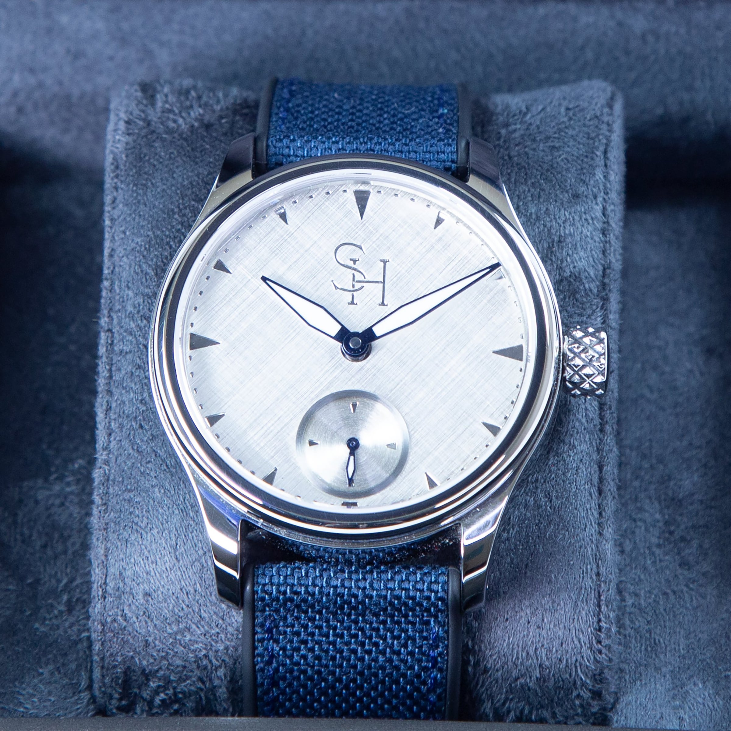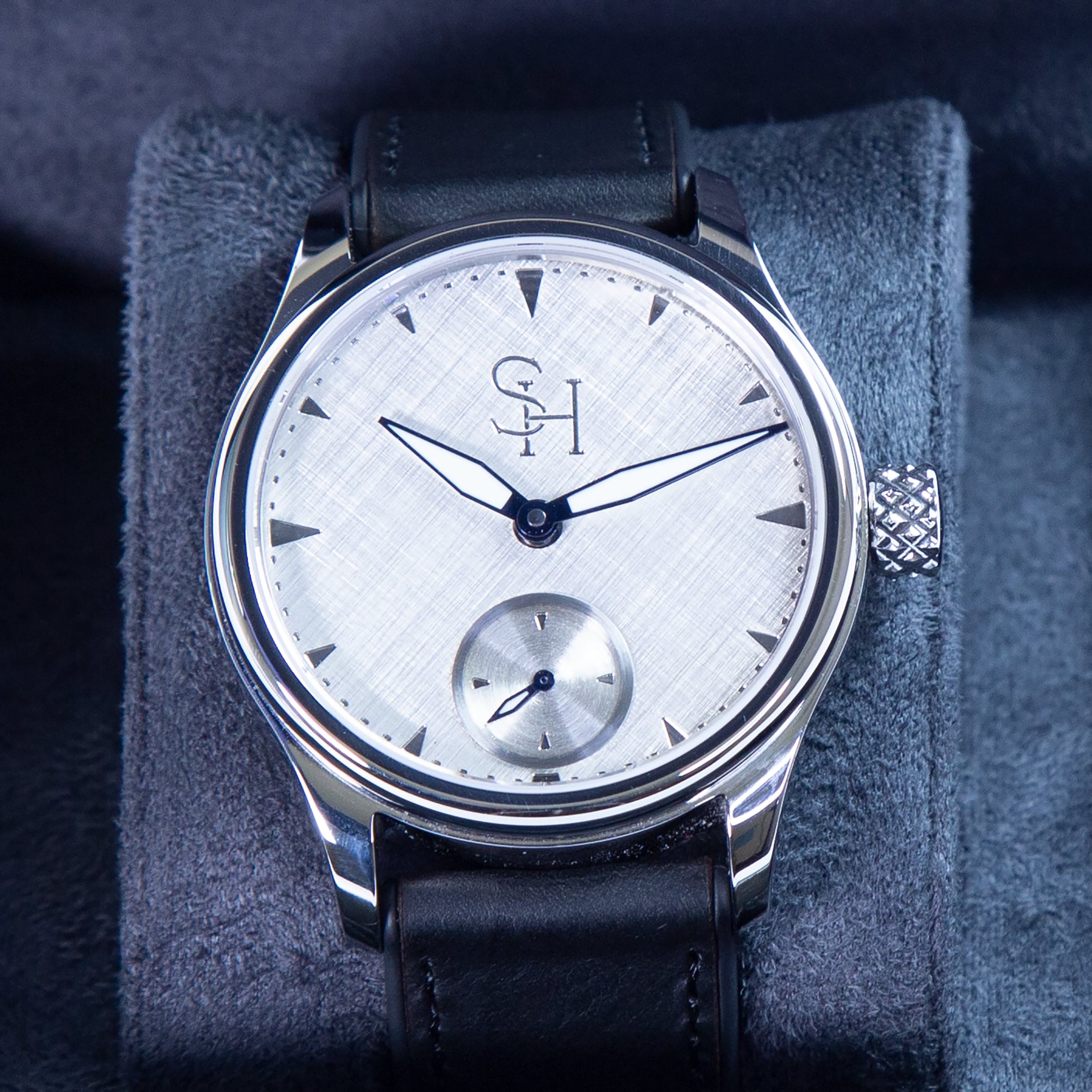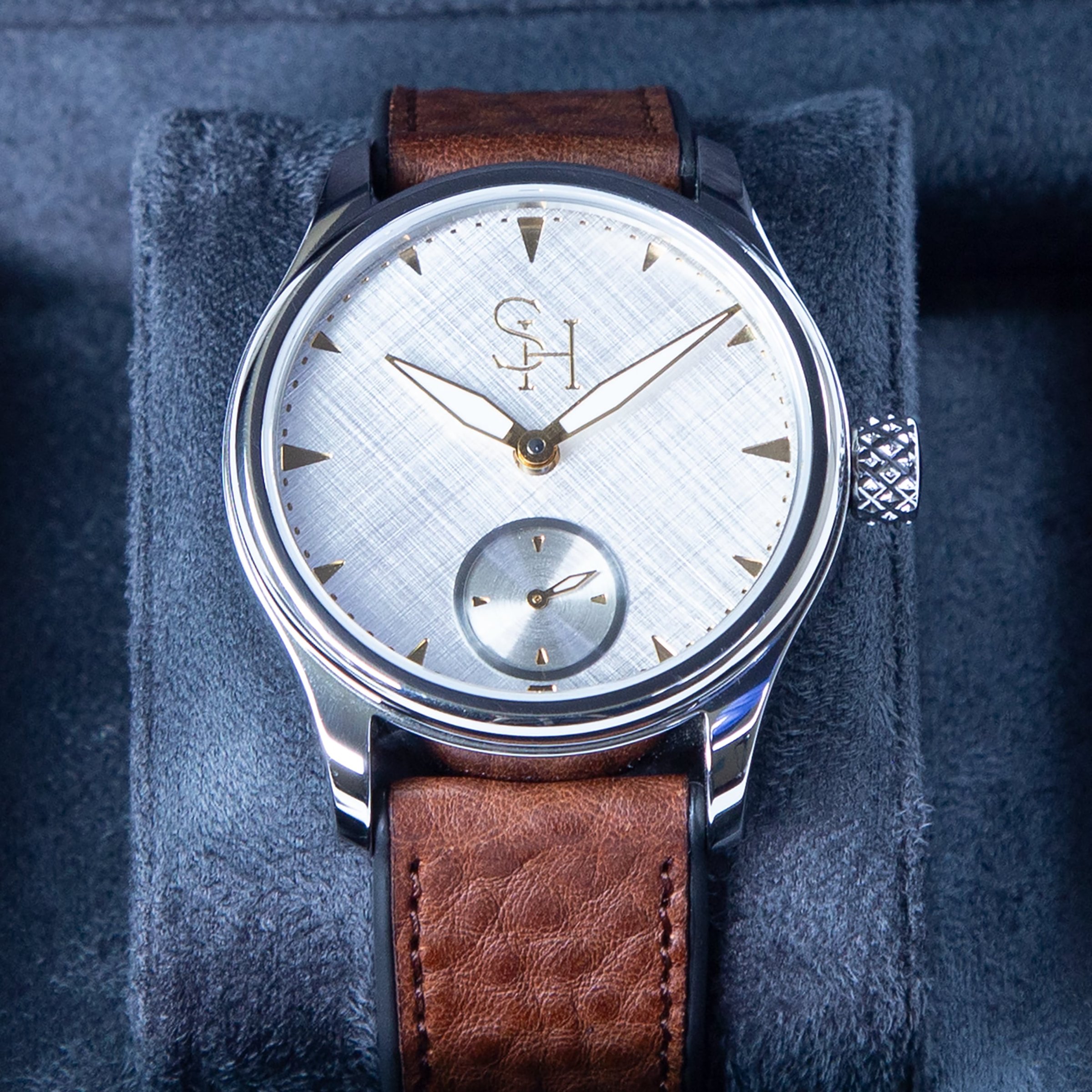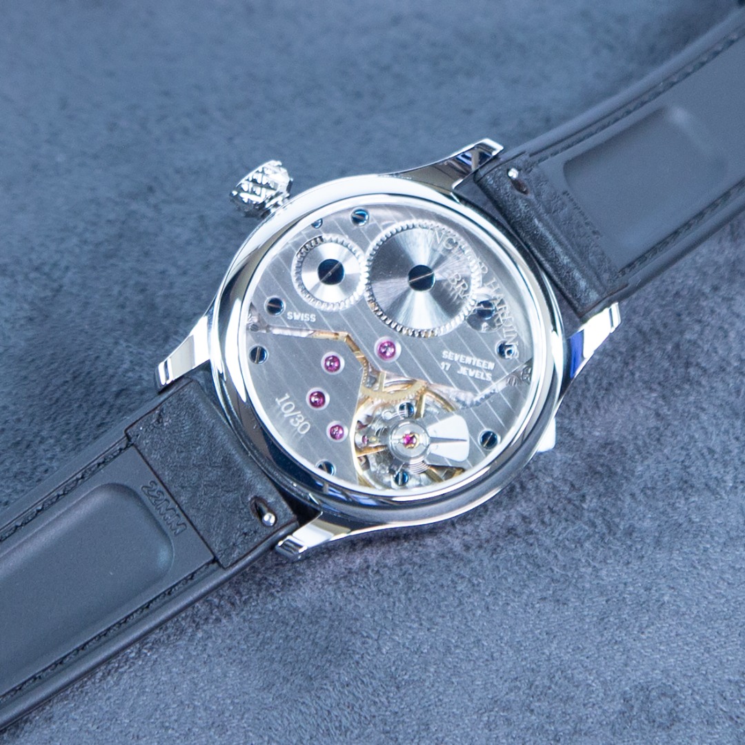 Each movement is fully serviced, pressure tested to 50 metres, and finished by hand. Our prototypes have travelled the world on the wrists of friends, customers, and suppliers. The feedback has exceeded all expectations, ranging from “It’s not bad” from Roger Smith, to “It’s perfectly imperfect” from a gentleman working at one of the most prestigious watch brands in the world. From the outset, our goal was to create a timepiece that feels personal, — something you can truly make your own. To celebrate Bob’s 30th anniversary at Sinclair Harding, in 2026 we will produce just 30 pieces. Each watch can be customised with your choice of dial finish, indicator colours (Gold, Rose Gold, or Platinum), seconds dial finish, hand colours, and strap options — allowing you to create a watch that is uniquely yours. The sapphire case back can also be laser engraved on the inside with a personal message or logo.